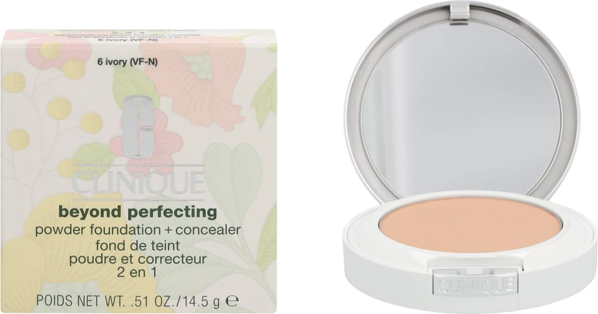 Een huid die de hele dag volmaakter dan volmaakt blijft? Dat kan! Dankzij de introductie van de Beyond Perfecting Powder Foundation + Concealer van Clinique. Een 2-in-1 poederfoundation en -concealer die zorgt voor een fraaie, gelaagde structuur en volledige dekking, maar die toch vederlicht aanvoelt. Beyond Perfecting Powder Foundation + Concealer heeft een crème-achtige en prettige structuur dankzij een dubbel vermalingsproces, waardoor de bestanddeeltjes nog fijner worden en lichter aanvoelen op de huid. Daarnaast bevat het poeder een speciaal vochtvasthoudend mengsel van glycerine, fytosqualaan en murumuru-boter dat een weldaad is voor de droge delen van de huid. Beschikbaar in zes veelzijdige tinten voor huidtypen 2, 3 en 4. Door het handige doosje kun je ook onderweg snel en eenvoudig de poederfoundation aanbrengen.