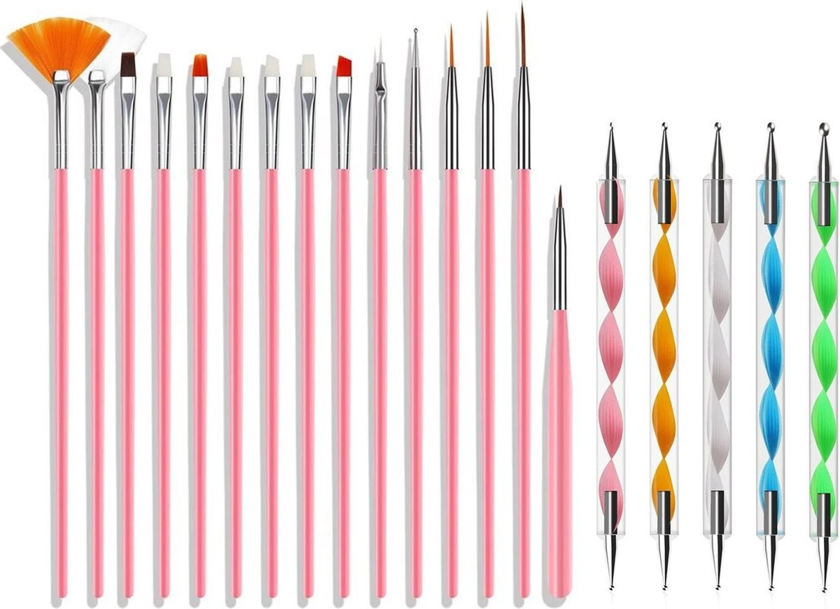 Gek op nagellak? Maak jij er ware kunstwerkjes van? Met deze Evvie© set van 15 verschillende nail art penselen en set van 5 dotting tools teken je in een handomdraai de mooiste patronen op je nagels. Van stip tot streep, van marmer tot bloemmotief, jouw nagels zien er nooit meer saai uit!