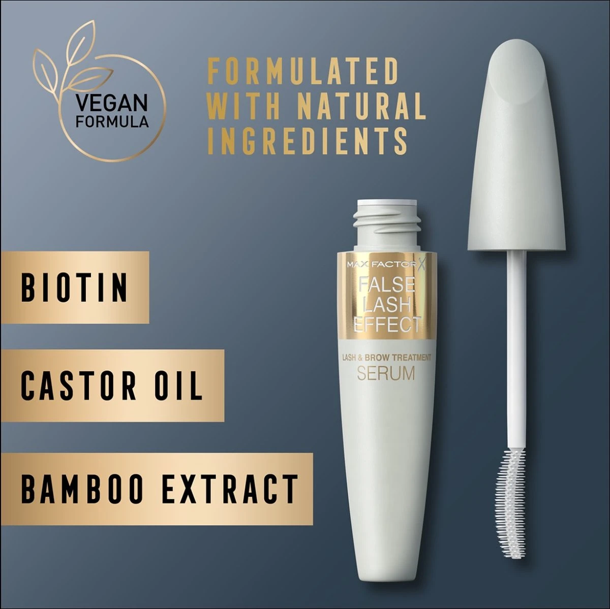 ‘Breng de serum ’s nachts aan op de wimpers en wenkbrauwen. Voor een extra zichtbaar lengte-effect, combineer je dit serum met een mascara uit het Max Factor False Lash Effect assortiment!