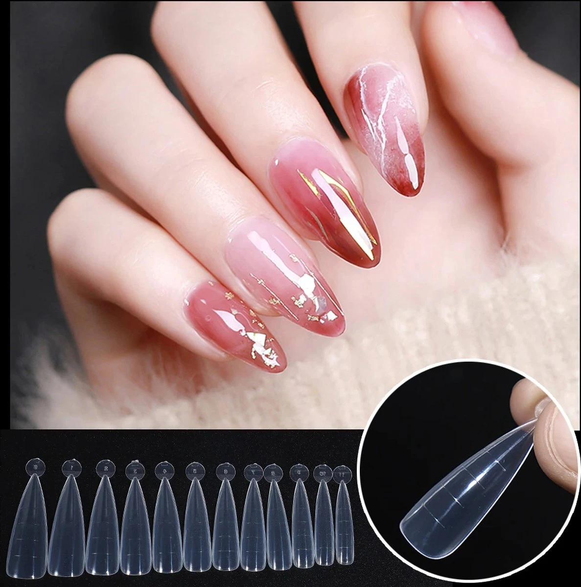 – Transparante modellering sjablonen voor Polygel / Gel / en Acryl nagels.